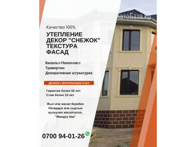 Утепление. Декор "Снежок". Текстура. Фасад. Базальт-Пенопласт. Травертин. Декоративный штукатурка. С материалами, и без материала делаем. Качество 100% Стаж более 10 лет Гарантия более 50 лет Жыл ичи жасап береби Үйлө...