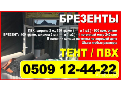 Тент Бишкек. Продаю брезент, тент, ПВХ Тент (брезент): ПВХ: ширина 3 м., 750 грамм ( — в 1 м2 ) - 900 сом, оптом БРЕЗЕНТ: 400 грамм, ширина 2 м. ( — в 1 м2 ) - 1 погонный метр 240 сом Также в наличии кольца на тенты по х...