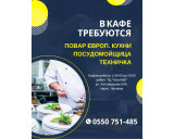 В кафе требуются: посудомойщица, техничка, повар европ. кухни