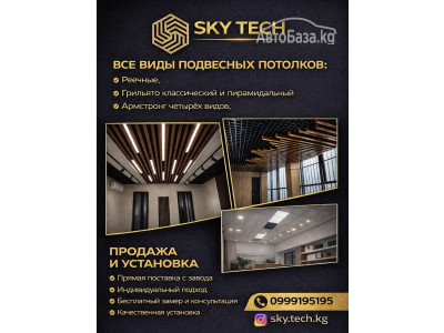 Мы компания Sky-tech, занимающаяся продажей и установкой всех видов ПОДВЕСНЫХ ПОТОЛКОВ таких как: Реечный, грильято классический и пирамидальный, Армстронг четырёх видов. *Прямая поставка с завода *Индивидуальный подход *Бесплатный зам...