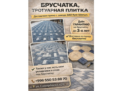 Брусчатка, тротуарная плитка Изготавливаем тротуарную плитку из качественных инертных материалов, используем только чистый мытый отсев, песок, щебень. Доставляем прямо с завода ЗАО Кум Шагыл. Даём гарантию на брусчатку до 3х лет. Достав...