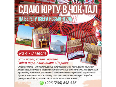 Сдаю юрту в Чок Тал, на берегу озера ИК. 4 - 8 мест.