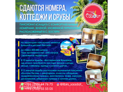 СДАЮТСЯ НОМЕРА, КОТТЕДЖИ И СРУБЫ Пансионат «Саадат» с комфортабельными номерами, зеленой, ухоженной территорией расположенный в с.Бостери!