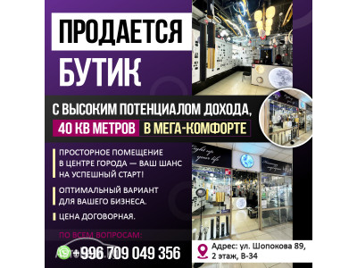 Продается бутик с высоким потенциалом дохода, 40 кВ метров в Мега-комфорте.